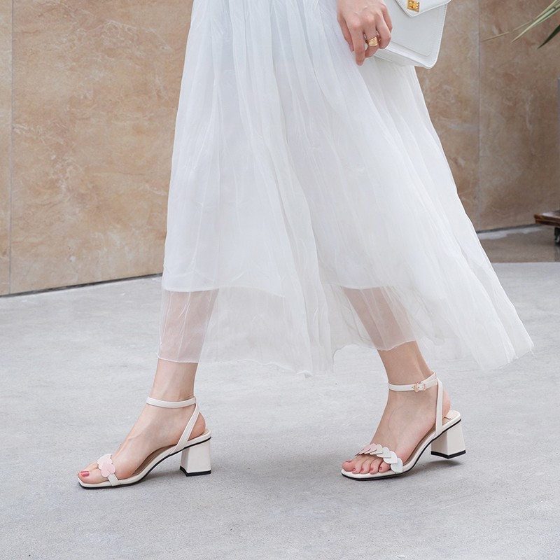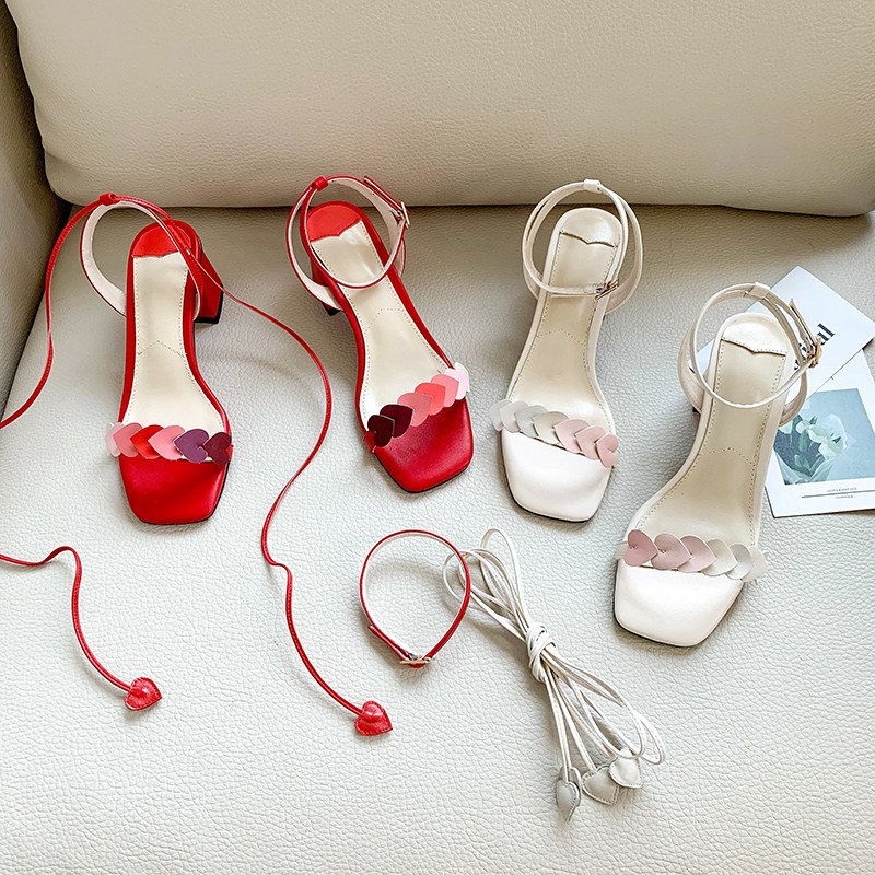 2019新款凉鞋女夏粗跟高跟鞋网红仙女风超火爱心少女一字绑带鞋子